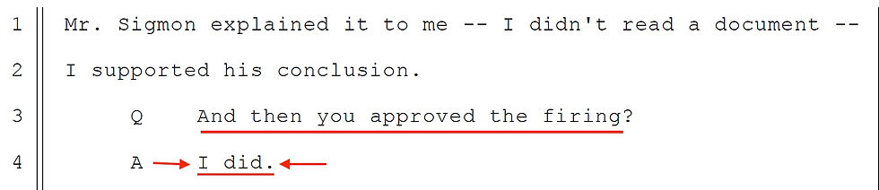 Mr. Flanagan finally, in week two of the trial, admitted he did approve the termination of this employee - it took 6 years to get the truth out of him